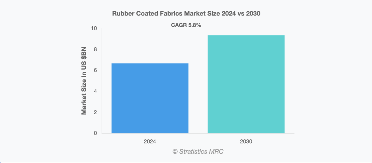 According to Stratistics MRC, the Global Rubber Coated Fabrics Market is accounted for $6.66 billion in 2024 and is expected to reach $9.34 billion by 2030 growing at a CAGR of 5.8% during the forecast period.