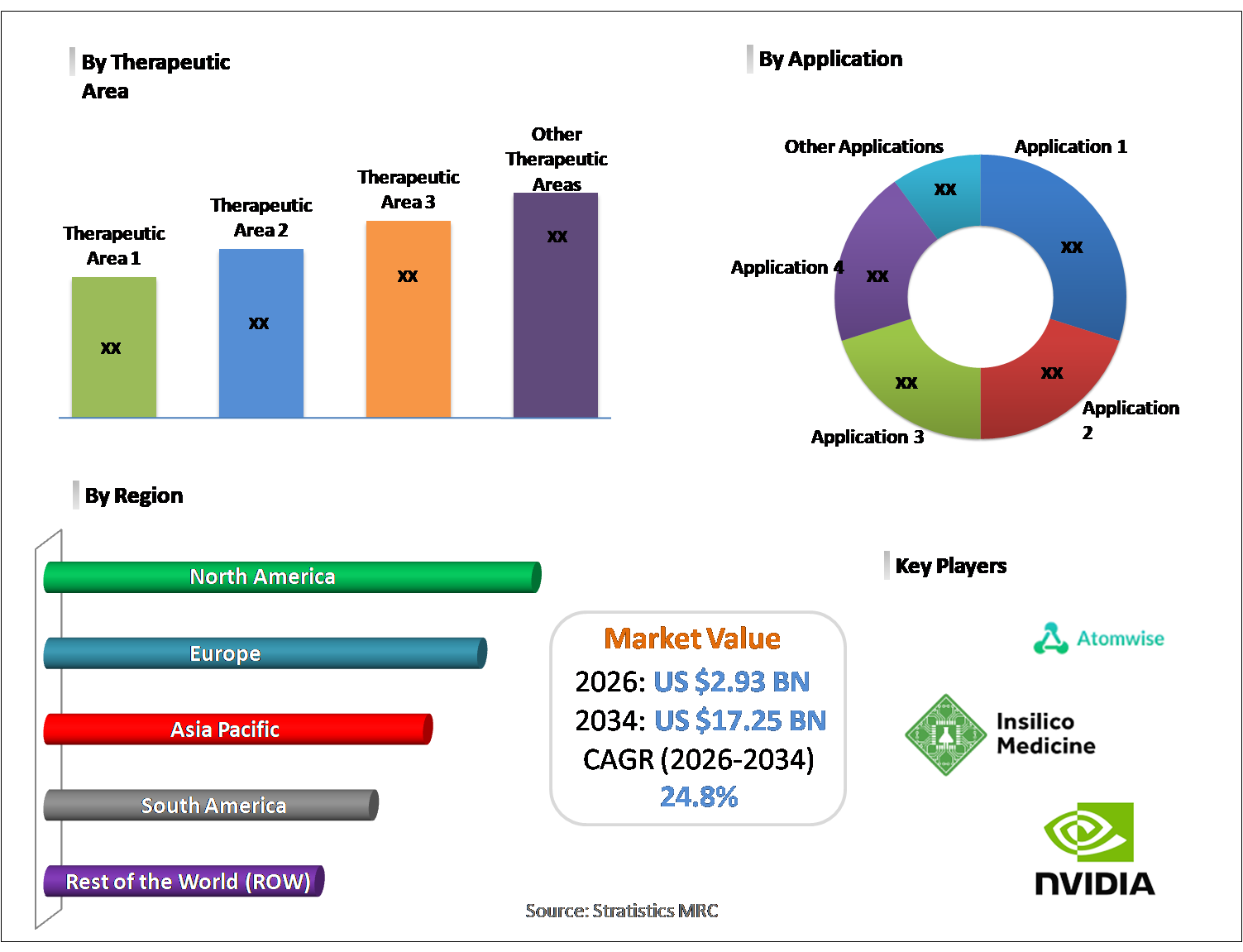According to Stratistics MRC, the Global AI For Drug Discovery Market is accounted for $2.93 billion in 2026 and is expected to reach $17.25 billion by 2034 growing at a CAGR of 24.8% during the forecast period. AI for Drug Discovery refers to the application of advanced artificial intelligence technologies, including machine learning, deep learning, and natural language processing, to streamline and enhance the drug development process. By analyzing vast datasets from molecular structures and biological pathways to clinical trial results AI models can predict compound efficacy, identify potential drug targets, optimize molecular designs, and forecast safety profiles. This accelerates research timelines, reduces costs, and improves success rates in bringing novel therapeutics to market, enabling more precise, efficient, and data driven drug discovery across pharmaceuticals and biotechnology sectors.