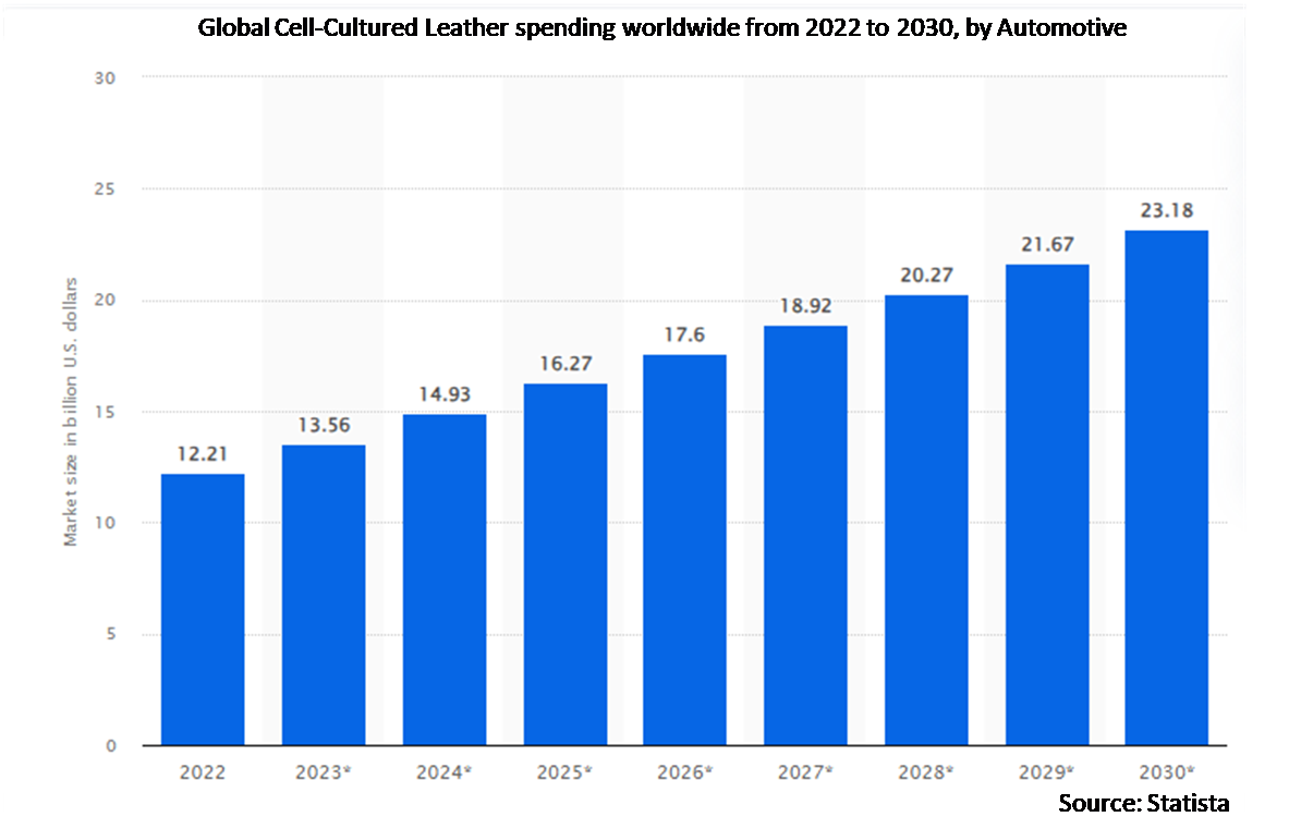 Owing to rising awareness of ethical and sustainable practices, consumers seek alternatives to traditional leather. Cell-cultured leather, offering a cruelty-free and eco-friendly option, aligns with these values. The growing demand for products that minimise environmental impact and animal harm positions cell-cultured leather as an attractive choice. Capitalising on this trend presents an opportune moment for market growth and wider adoption of innovative, sustainable materials.