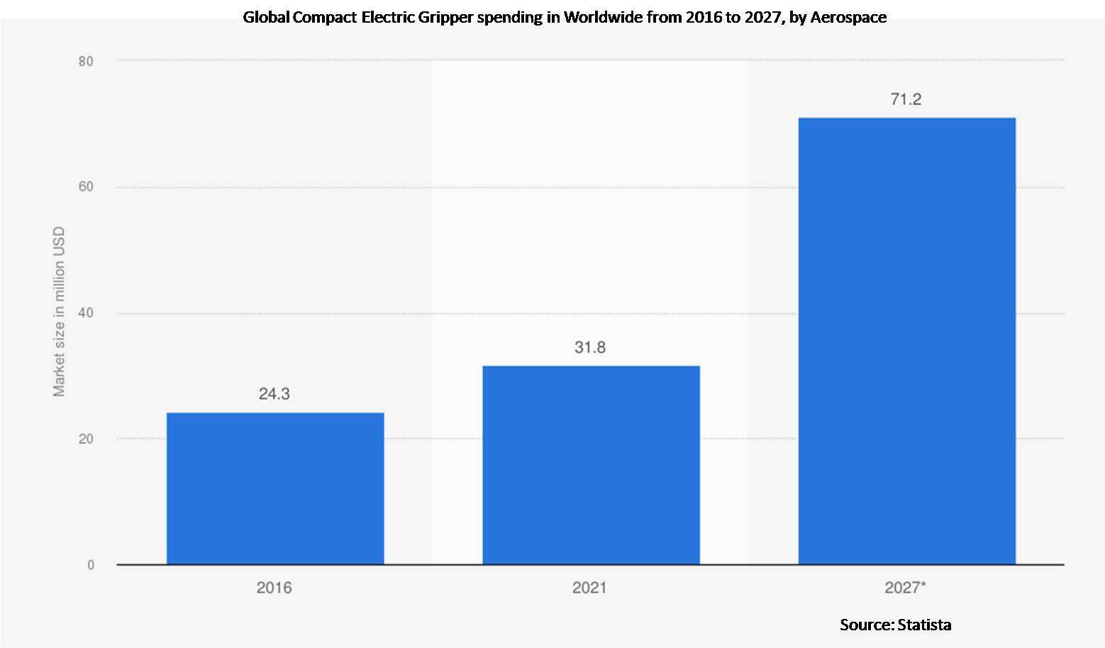 Compact electric grippers have become more durable, adaptable, and lightweight as a result of advancements in material science and design. Improved performance, increased reliability, and less maintenance are benefits of using advanced materials like lightweight alloys and composites. Additionally, currently available small electric grippers have advanced feedback and sensing mechanisms. These systems enable precise and adaptive gripping by incorporating technologies such as force and tactile sensors. They make the gripper more suitable for a wider range of applications by detecting variations in object size, shape, and fragility. These factors propel market demand.