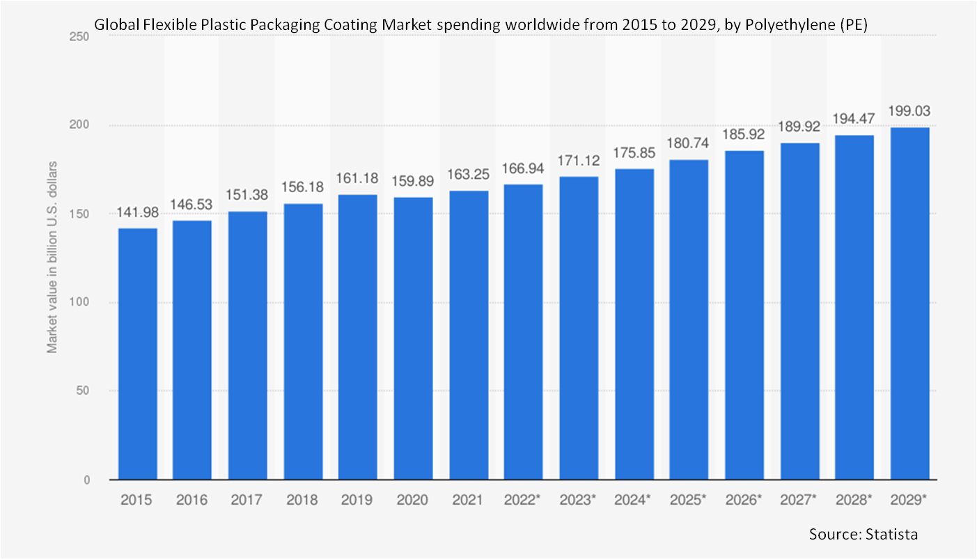 The market for flexible plastic packaging coating was affected by the COVID-19 pandemic in a variety of ways. On the one hand, the use of coated flexible packaging increased as demand rose in critical industries like food, pharmaceuticals, and personal care, where hygienic practices, barrier protection, and longer shelf life became critical. This trend was further accelerated by the growth of home deliveries and e-commerce. However, the industry also had to deal with issues like labor shortages, supply chain disruptions, and shortages of raw materials, which made it difficult to meet delivery and production deadlines. Furthermore, the overall growth was somewhat offset by a brief decline in demand from non-essential industries like luxury goods and cosmetics.