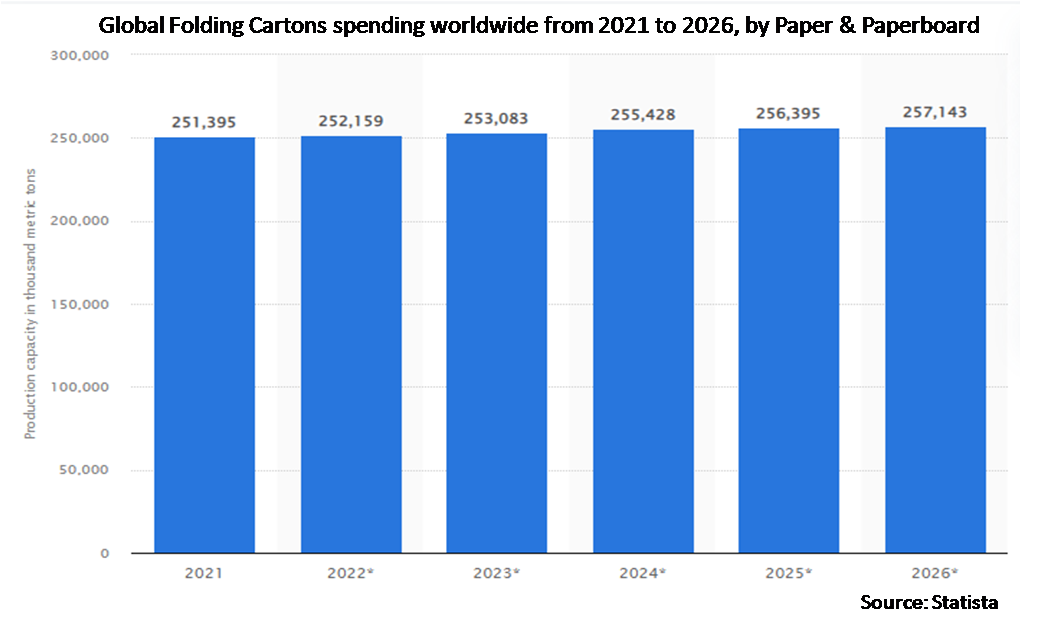 The volatility of prices for wood pulp or other raw materials utilized in the manufacture of folding cartons is acting as a threat to the growth of the folding cartons market. Unexpected orders and periodic variations in box quantities cause issues in manufacturing facilities. Paper industry issues influence the overall expansion of the folding carton market. Paper is an indispensable raw material for the manufacture of folding cartons. Hence the decline in paper production affects the growth of the folding carton market.