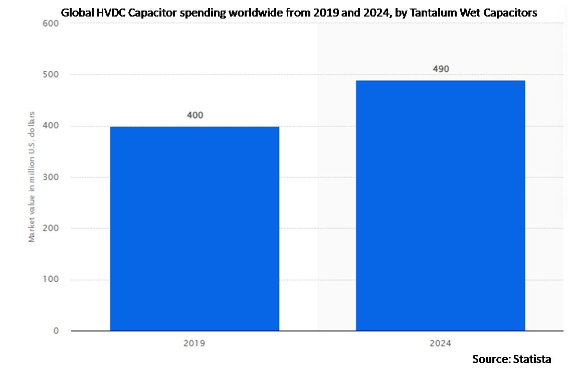 The key component of the HVDC transmission system is an HVDC capacitor is essential for converting AC to DC, moving power between converter stations, and converting DC to AC again so that it may be supplied into the power grid. They aid in preserving voltage stability, enhancing the calibre of the power, and promptly controlling power flow. By quickly controlling the power flow in the transmission lines, they also lessen the chance of short-circuiting current. At the receiving converter station at the end of the HVDC connection, capacitor banks also safeguard and guarantee that the AC output voltage is constant and prepared to be supplied into the electrical grid. As a result, the market is growing due to the rising demand for HVDC transmission systems.