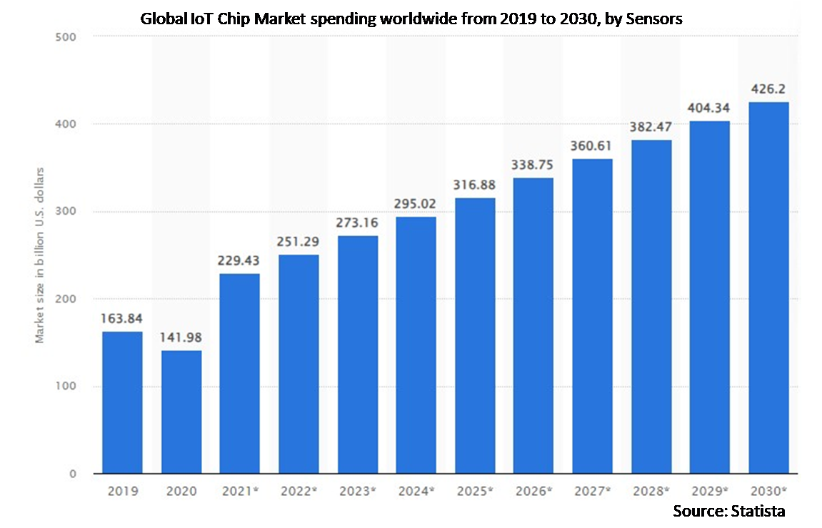 The increasing number of wearables, connected cars, and smart homes is driving up demand for IoT chips, which allow these devices to communicate and work together. Smart lighting systems, fitness trackers, and even driverless cars are made possible by the integration of IoT chips, which enable these gadgets to gather, process, and communicate data to create more effective, efficient and customized user experiences. Moreover, the market for IoT chips is expected to grow as consumer interest in smart technology continues to rise.
