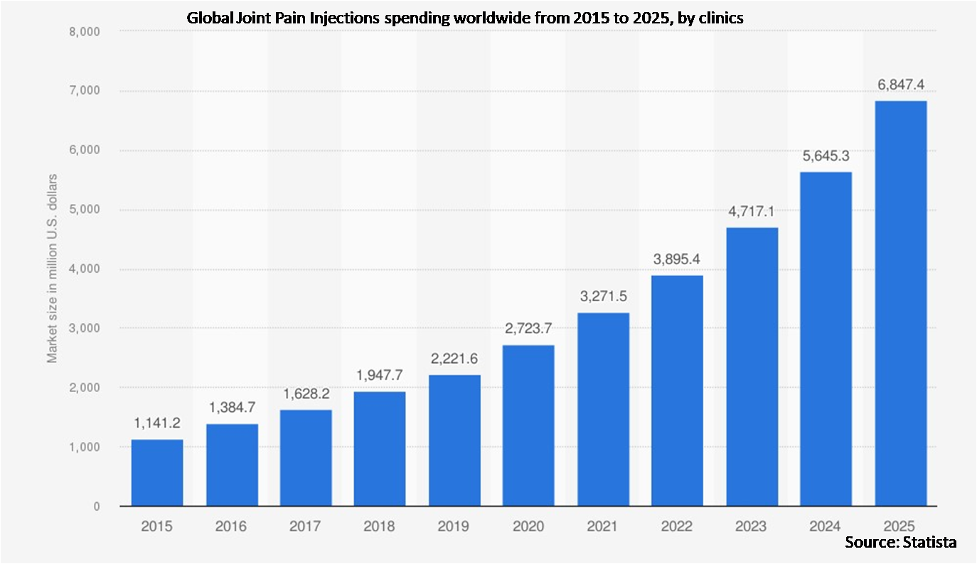 One driver of the market is the growing prevalence of joint-related disorders. The increasing incidence of conditions such as osteoarthritis and rheumatoid arthritis has created a substantial demand for effective pain management solutions, including joint pain injections. The rising aging population, sedentary lifestyles, and sports-related injuries further contribute to the market growth.