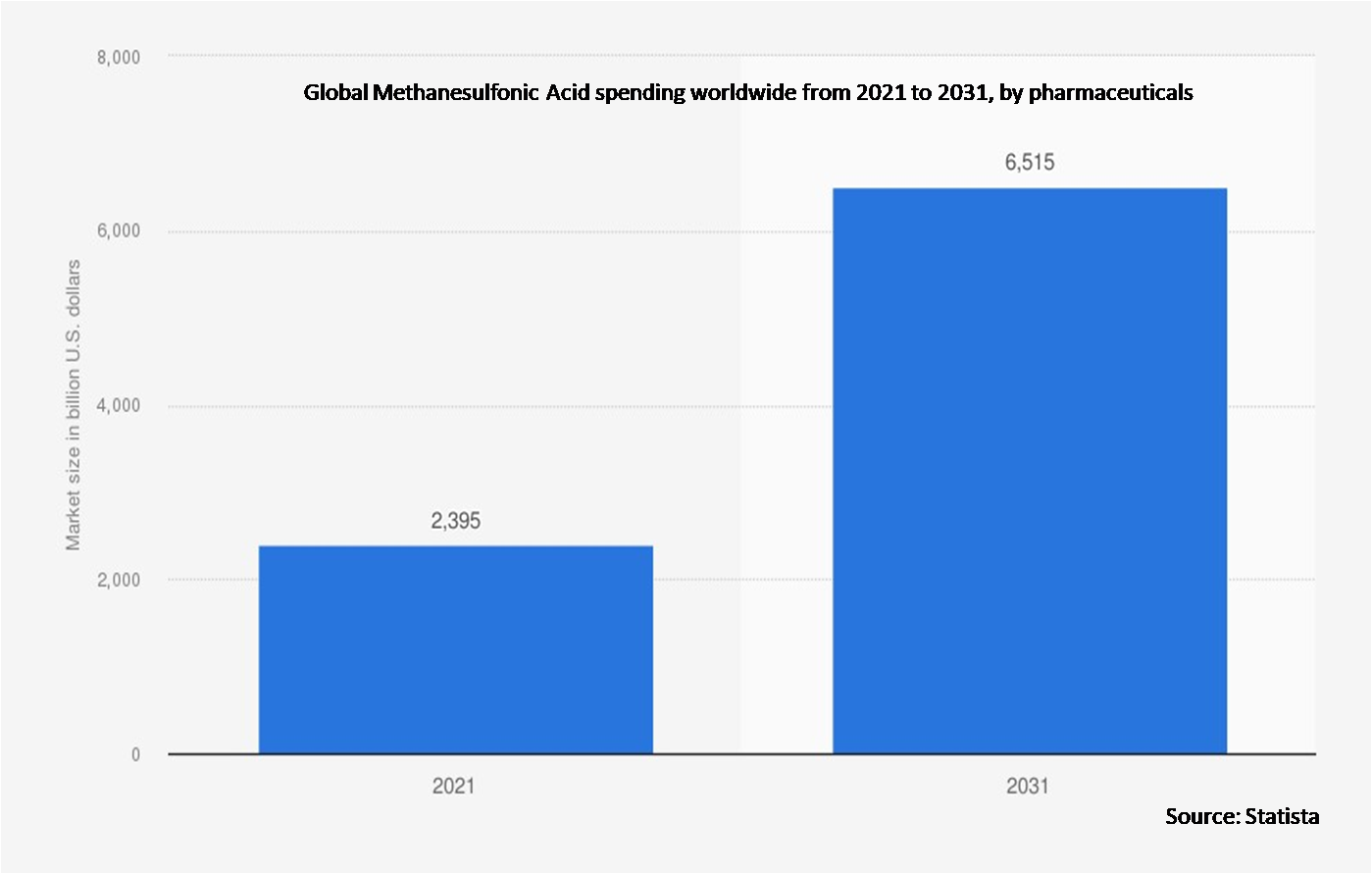 According to the International Federation of Pharmaceutical Manufacturers and Associations, methanesulfonic acid is predicted to increase over 4.8% between 2024 and 2032.
