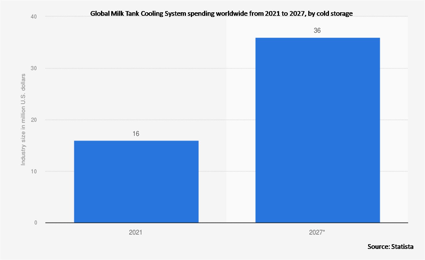 The exponential increase in milk output is presently driving up the need for milk tank cooling systems. To meet the needs of the expanding population, production volume is rising along with global population growth. To prevent contamination, the milk must be chilled both before and after processing. In milk farms or places where raw milk is collected, these systems are becoming more widely used. These cooling devices are increasingly being used in milk transportation due to the increasing number of remote milk collection stations. The rise of milk tank cooling systems should be further aided by a rise in milk export volume.