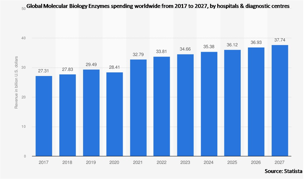 The need for specialized enzymes is driven by ongoing advances in molecular biology research as well as the necessity of enzymes for a variety of applications in industries including proteomics, genomics, and recombinant DNA technology. Additionally, advances in recombinant DNA, protein engineering, and enzyme engineering result in the production of new enzymes with enhanced characteristics, which propels market expansion.
