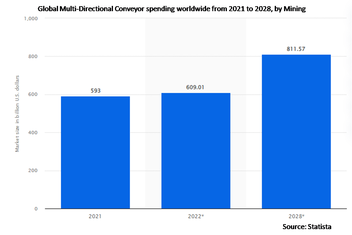 The market for multidirectional conveyors is expanding due to consumer desire for conveyors that can handle items in many directions. In response, producers provide conveyor systems with increased flexibility and agility. Multidirectional conveyors allow facilities to maximize their layout design. By allowing items to travel in numerous directions, these conveyors improve workflow and make better use of the available space. The flexibility of multi-directional conveyors is advantageous to industries with varying production demands. Compared to standard linear conveyors, these conveyors are more able to adapt to changes in inventory handling requirements or production layout modifications.