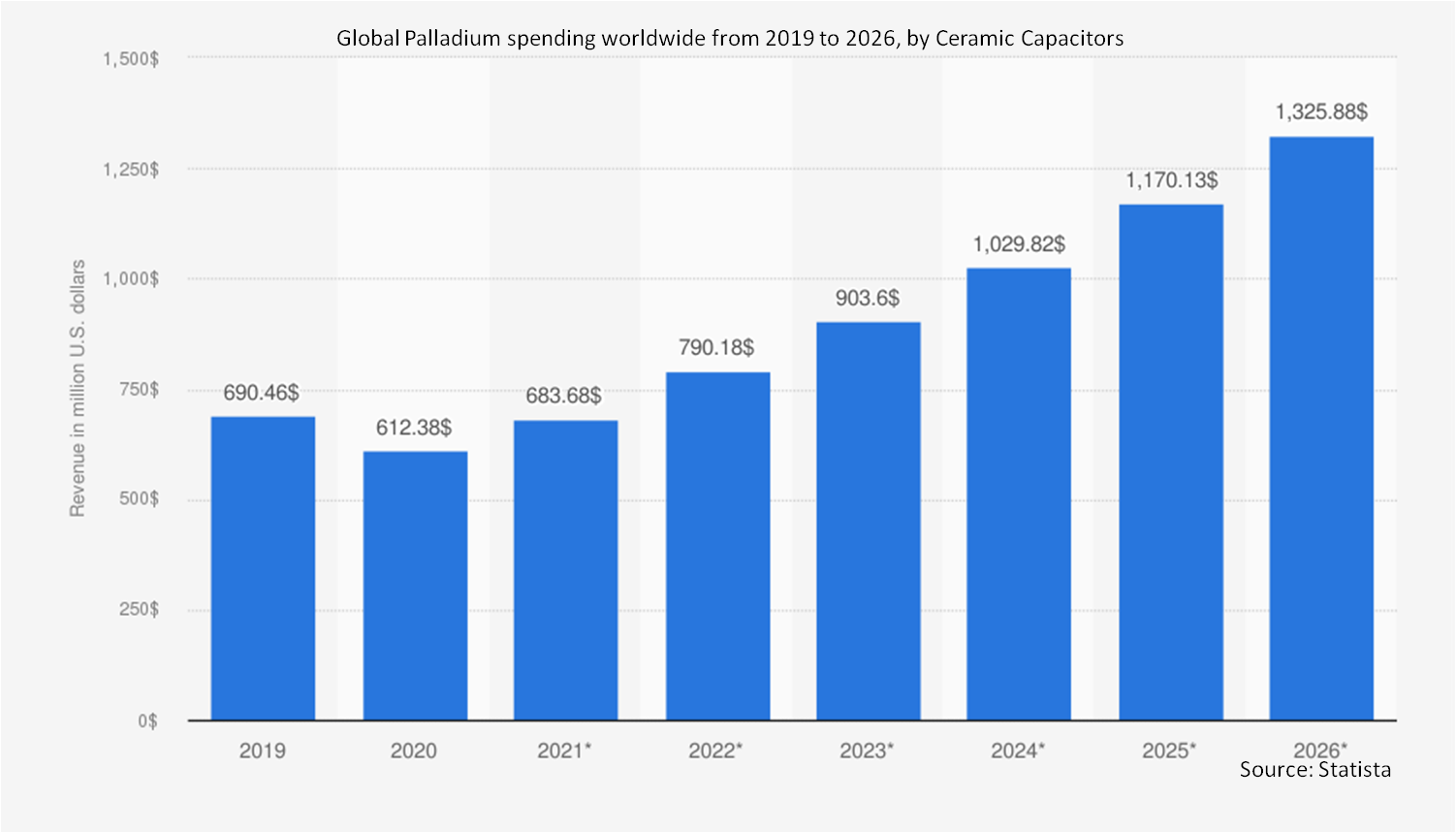 Some of the key players in Palladium Market include Alfa Aesar, Anglo American Platinum Limited, First Quantum Minerals Ltd, Heraeus, Impala Platinum Holdings Limited, Ivanhoe Mines Ltd., Johnson Matthey, New Age Metals Inc., Norilsk Nickel, Northam Platinum Holdings Limited, Otto Chemie Pvt. Ltd, Platinum Group Metals Ltd., Sibanye-Stillwater, Southern Palladium Limited, Thermo Fisher Scientific Inc. and Vale S.A.