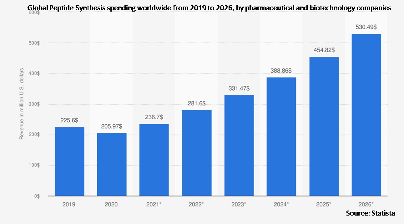 The peptide synthesis sector has significant growth prospects due to the emergence of customized medicine. The idea of customized medicine is made possible by the ability to customize peptides to fit certain patient profiles. They provide the necessary targeting, customisation, and specificity to enable individualized treatment plans. It is anticipated that the need for peptide synthesis technology, services, and products will increase dramatically as personalized medicine continues to develop and gain popularity.