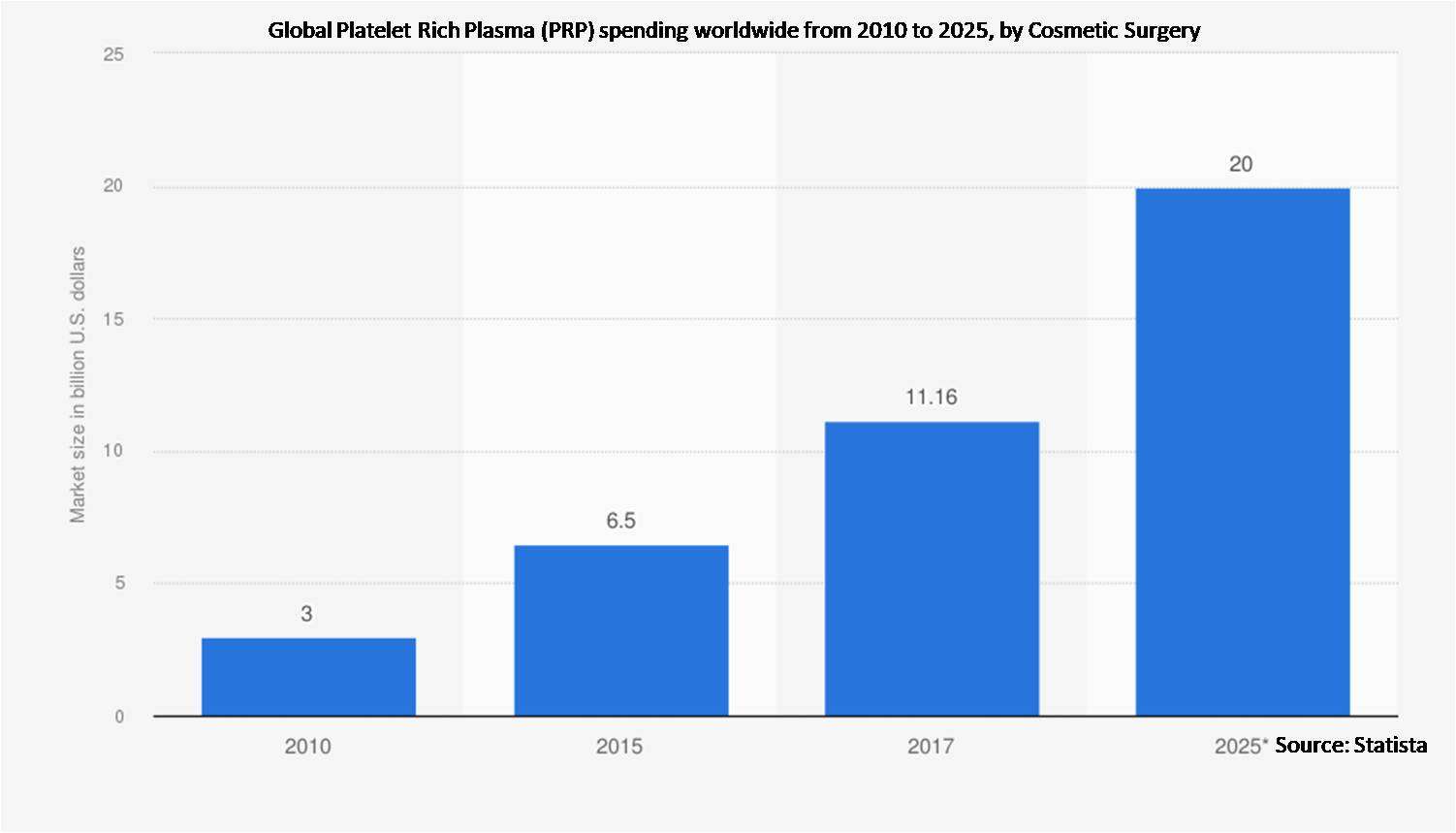 According to Stratistics MRC, the Global Platelet Rich Plasma (PRP) Market is accounted for $863.9 million in 2024 and is expected to reach $2,250.5 million by 2030 growing at a CAGR of 17.3% during the forecast period. Platelet Rich Plasma (PRP) therapy involves using a concentrated form of a patient's own blood plasma to promote healing and tissue regeneration. This procedure begins with drawing a small amount of blood from the patient, which is then spun in a centrifuge to separate the platelets and plasma from other blood components. Platelets are tiny blood cells crucial for clot formation and contain growth factors that facilitate healing processes in the body. Once concentrated, this platelet-rich plasma is injected back into the patient's affected area, such as joints, tendons, or skin, where it stimulates tissue repair and regeneration.
