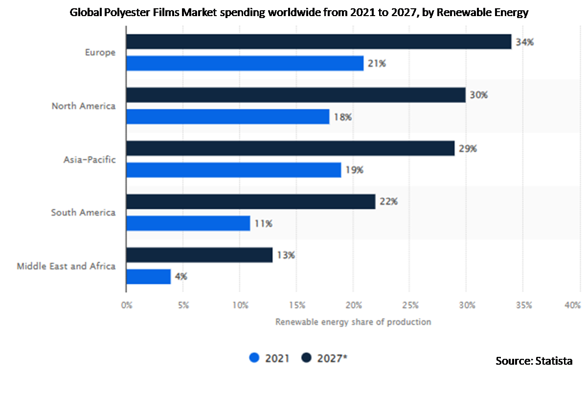 The global Polyester Films market expected to hamper growth during the forecast period. Globally, governments are enforcing strict regulations pertaining to the use of plastics and their effects on the environment. The market may be threatened if this results in limitations on the use of polyester films. The demand for polyester films may be further impacted by the shift toward sustainable and eco-friendly alternatives brought on by the growing awareness of the negative environmental effects of plastics.