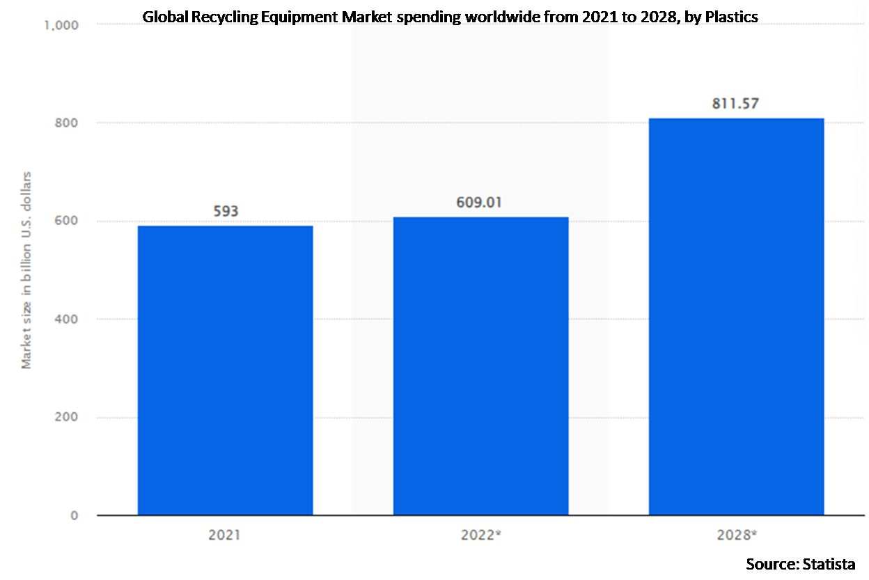 The global Recycling Equipment market expected to drive growth during the forecast period. The main element fueling the expansion of the market for recycling equipment is the rising awareness of the value of recycling. Recycling waste materials contributes to the preservation of natural resources and the reduction of environmental pollution. An increase in demand for recycling equipment is being caused by the need to lessen carbon emissions and protect the environment from pollution's harmful effects.