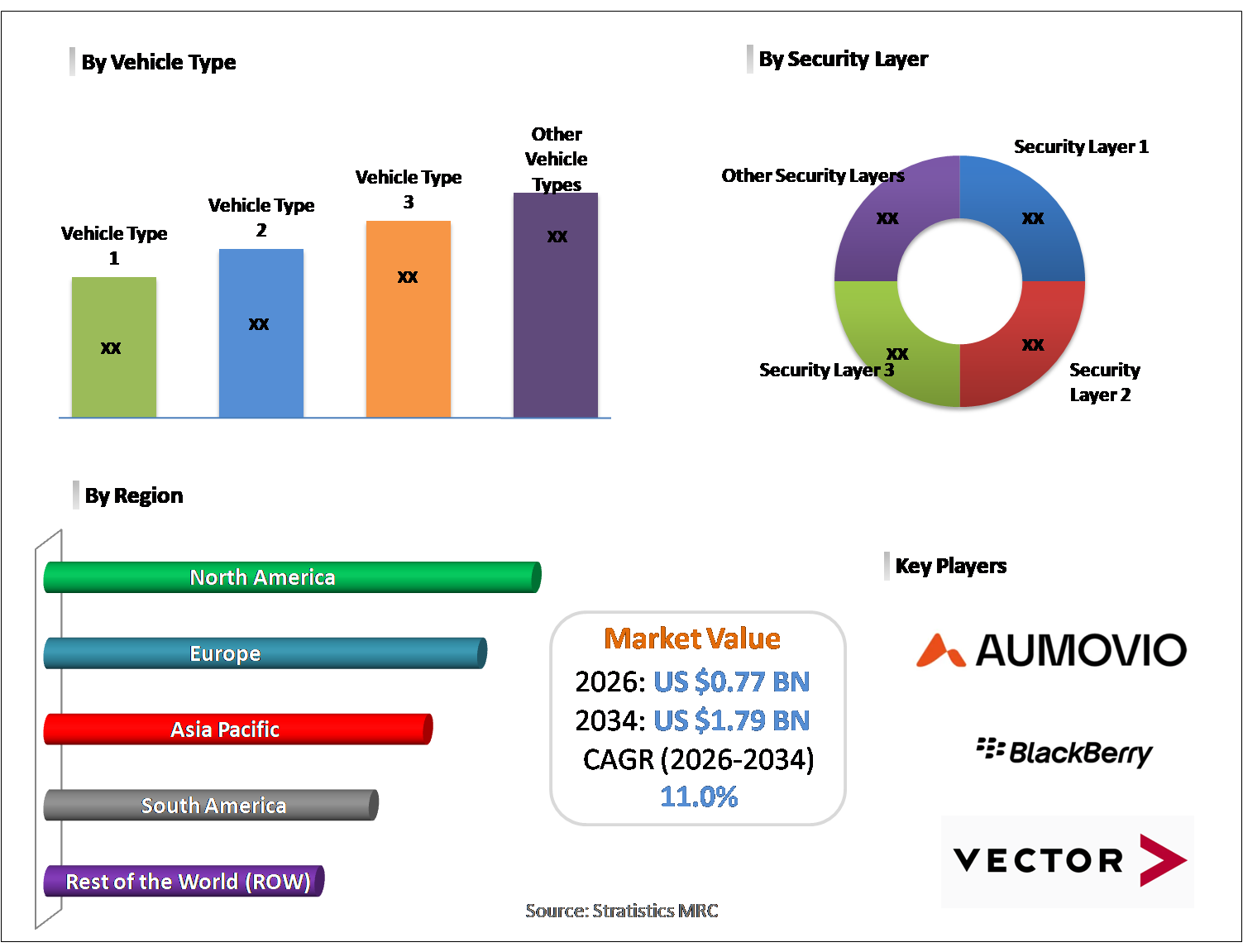 According to Stratistics MRC, the Global Safety and Cybersecurity in Connected Mobility Market is accounted for $0.77 billion in 2026 and is expected to reach $1.79 billion by 2034 growing at a CAGR of 11.0% during the forecast period. In connected mobility environments, safety and cybersecurity serve as foundational elements as vehicles, infrastructure, and digital platforms share information in real time. Technologies such as ADAS, V2X communication, and remote software updates enhance operational safety while simultaneously increasing vulnerability to cyber risks. Ensuring protection demands strong data encryption, resilient system design, continuous monitoring, and timely software updates. Compliance with global regulations and security standards also plays a vital role in mitigating cyber attacks and data misuse. As transportation systems evolve toward automation and digital integration, embedding cybersecurity into system architecture safeguards users and sustains confidence in smart mobility solutions.