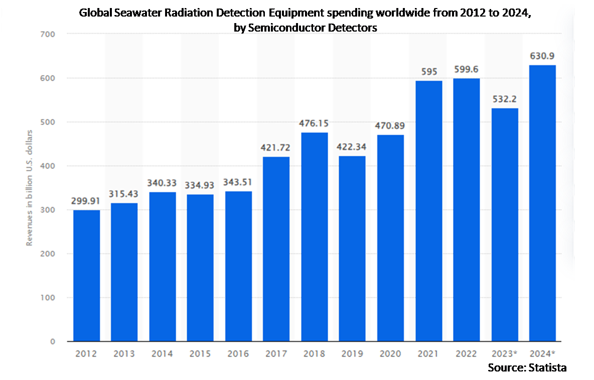 According to Stratistics MRC, the Global Seawater Radiation Detection Equipment Market is growing at a CAGR of 14.2% during the forecast period. Seawater radiation detection equipment refers to specialized instruments used to measure the levels of radioactive material present in marine environments. These instruments are crucial for monitoring environmental health, ensuring the safety of marine resources, and responding to potential radioactive incidents at sea.