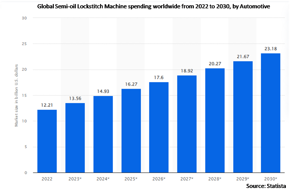 The escalating demand for sewn products across industries acts as a primary driver in the semi-oil lockstitch machine market. As consumer preferences evolve and industries expand, there's a parallel surge in the need for efficient sewing solutions. The machines, facilitating precise stitching in diverse materials, cater to the burgeoning demand for apparel, home textiles, automotive upholstery and industrial textiles. This growing market requirement fuels the adoption of semi-oil lockstitch machines, driving innovation and advancements to meet evolving production needs.