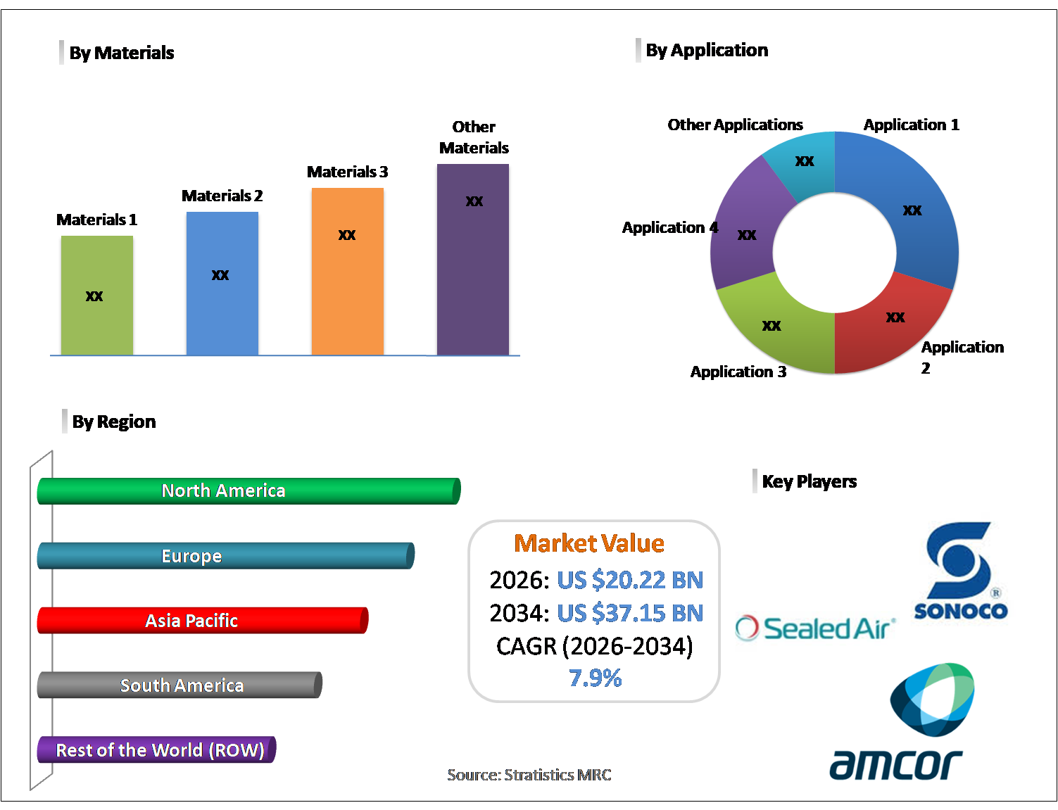 According to Stratistics MRC, the Global Smart Active Packaging Market is accounted for $20.22 billion in 2026 and is expected to reach $37.15 billion by 2034 growing at a CAGR of 7.9% during the forecast period. Smart active packaging refers to advanced packaging systems that actively interact with the packaged product or its environment to enhance product quality, safety, and shelf life. These solutions incorporate functional components such as oxygen scavengers, moisture regulators, antimicrobial agents, sensors, or indicators that respond to real-time conditions. Unlike traditional passive packaging, smart active packaging can monitor, preserve, and communicate product status throughout the supply chain. Widely used in food, pharmaceuticals, and consumer goods, it helps reduce spoilage, improve traceability, and support data driven inventory and quality management strategies.