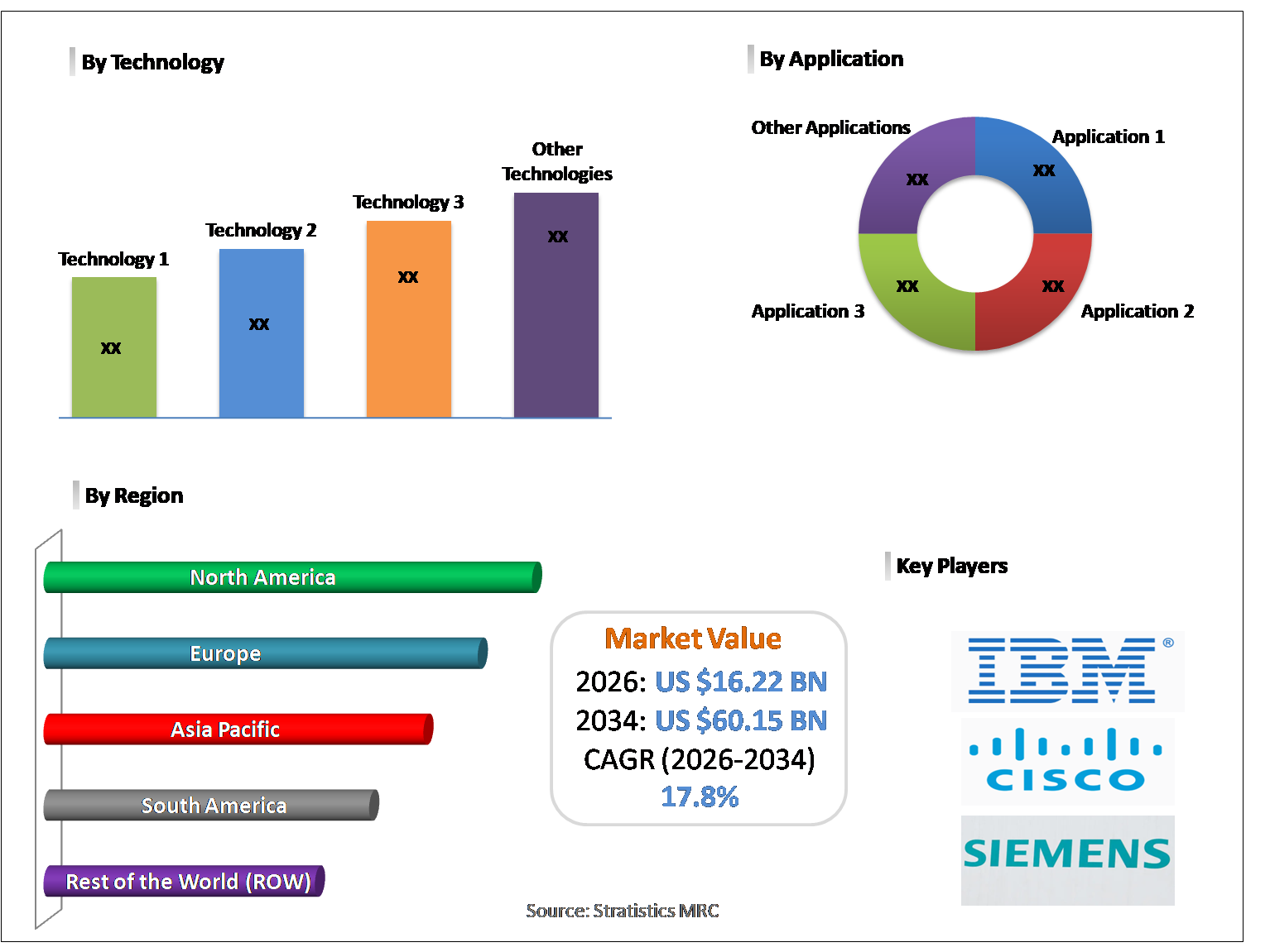 North America, Europe, Asia Pacific, South America, and Rest of the World (RoW) |