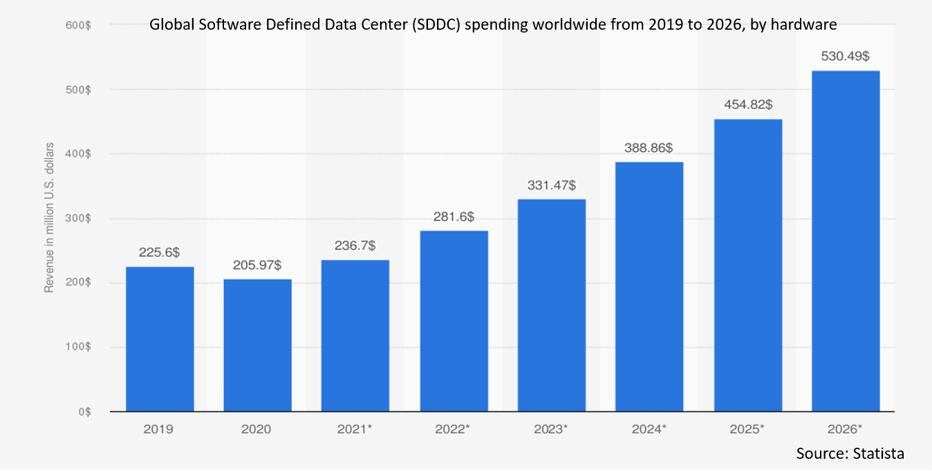 According to Stratistics MRC, the Global Software Defined Data Center (SDDC) Market is accounted for $86.52 billion in 2025 and is expected to reach $350.08 billion by 2032 growing at a CAGR of 22.1% during the forecast period. A Software Defined Data Center (SDDC) is a fully virtualized data center where all infrastructure components compute, storage, networking, and security are delivered as a service through software. It is managed by intelligent, automated software systems that enable greater flexibility, scalability, and efficiency. SDDCs support dynamic workload management, rapid provisioning, and seamless integration with cloud environments.