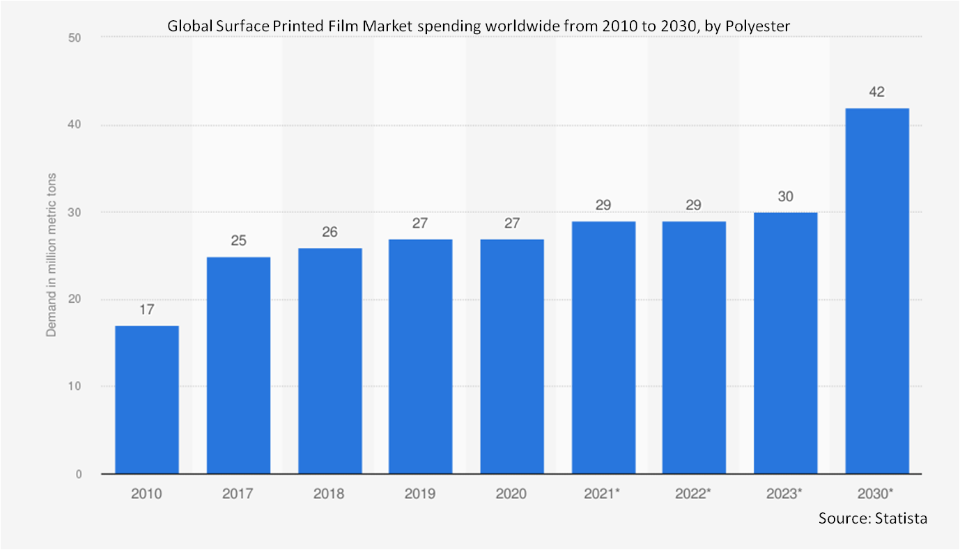 The COVID-19 pandemic affected the market for surface-printed films in a variety of ways. The need for flexible, hygienic packaging solutions was increased during lockdowns due to the spike in demand for packaged food, medications, and personal care items. This, in turn, fueled the growth of surface-printed films. However, supply chain interruptions, shortages of raw materials, and short-term closures of manufacturing plants resulted in higher expenses and production delays. Economic uncertainty also caused some end-use industries, such as electronics and automobiles, to cut back on orders, which somewhat restrained market growth. Overall, the pandemic sped up the adoption of creative and protective packaging, despite temporary difficulties.