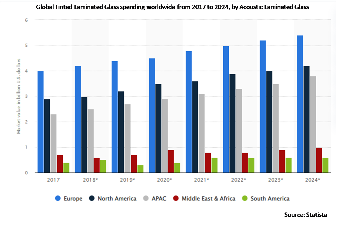 The acoustic laminated glass segment is expected to be the largest during the forecast period