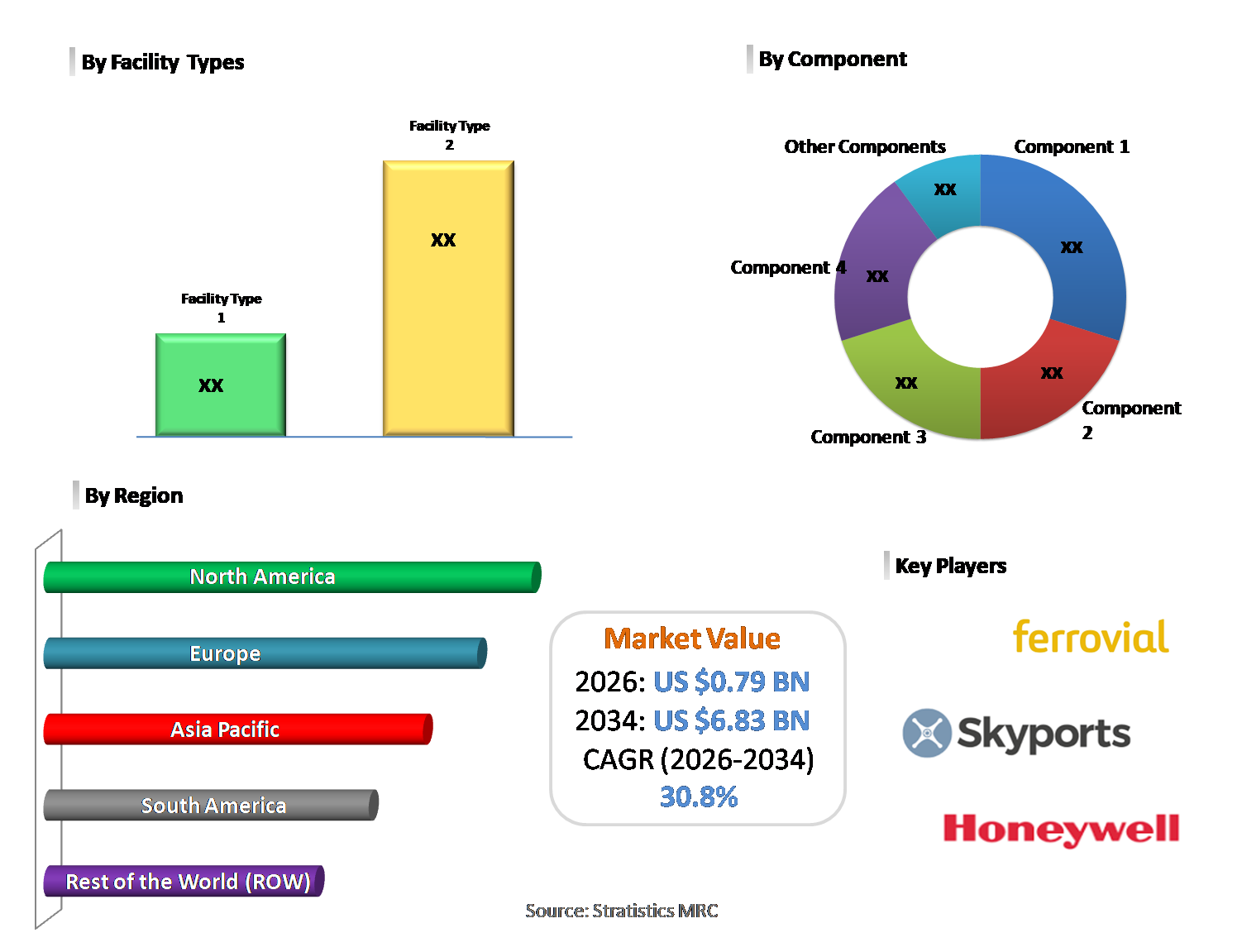 According to Stratistics MRC, the Global Urban Air Mobility (UAM) Vertiport Infrastructure Market is accounted for $0.79 billion in 2026 and is expected to reach $6.83 billion by 2034 growing at a CAGR of 30.8% during the forecast period. Urban Air Mobility (UAM) vertiport infrastructure refers to the physical and digital facilities designed to support the safe, efficient operation of electric vertical takeoff and landing (eVTOL) aircraft within urban environments. It includes landing pads, passenger terminals, charging and energy systems, air traffic management integration, maintenance areas, and connectivity platforms. These purpose-built hubs enable seamless multimodal transport by linking aerial mobility with ground networks. UAM vertiport infrastructure is engineered to meet stringent safety, regulatory, and sustainability requirements while accommodating high frequency operations in dense metropolitan settings, forming the backbone of future urban aerial transportation ecosystems.